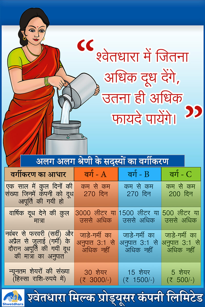 Once a farmer becomes member, she/he is assured for transparency in measurement of milk, timely payment (Once in ten days) and input services offered by a Shwetdhara Milk Producer Company Ltd. Other additional advantages may include receiving dividends and patronage-based incentives.